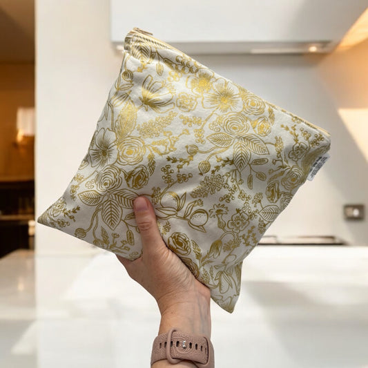 Gallon Sized Reusable Zippered Bag Stripes Floral Gold and Sparkly