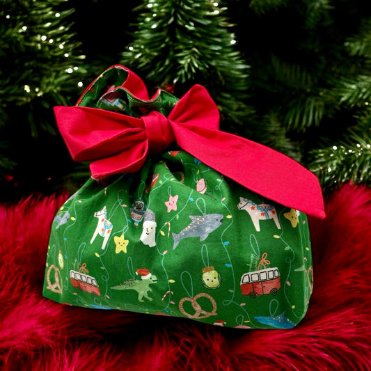 Just Right Gift Bag - Animals with Christmas Wreaths