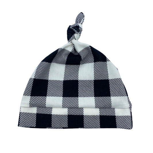 Knot Hat in Newborn: Plaid Black and White