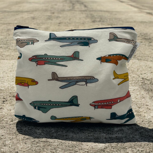 Sandwich Sized Reusable Zippered Bag Bias Stripe Navy