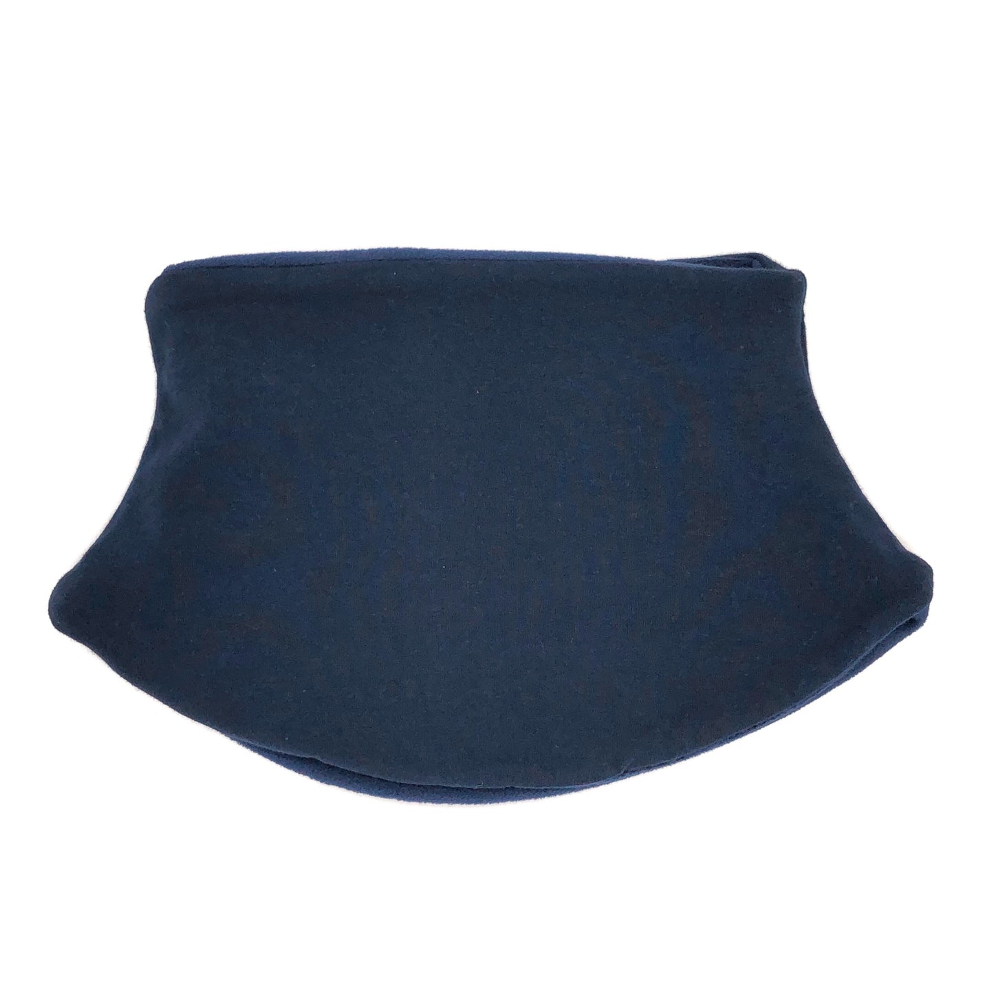 Expertly hand-crafted neck warmer in a timeless solid navy color. Made with soft knit fabric and lined with your choice of luxe fleece in navy, red, yellow, or stone gray. Suitable for all adult sizes, this neck warmer is comfortable, cozy, and easy to slip on and off without any added bulk from zippers or velcro. Ideal for baby wearing or nursing, and can be easily washed in cold water with like colors and tumble dried on low or line dried.