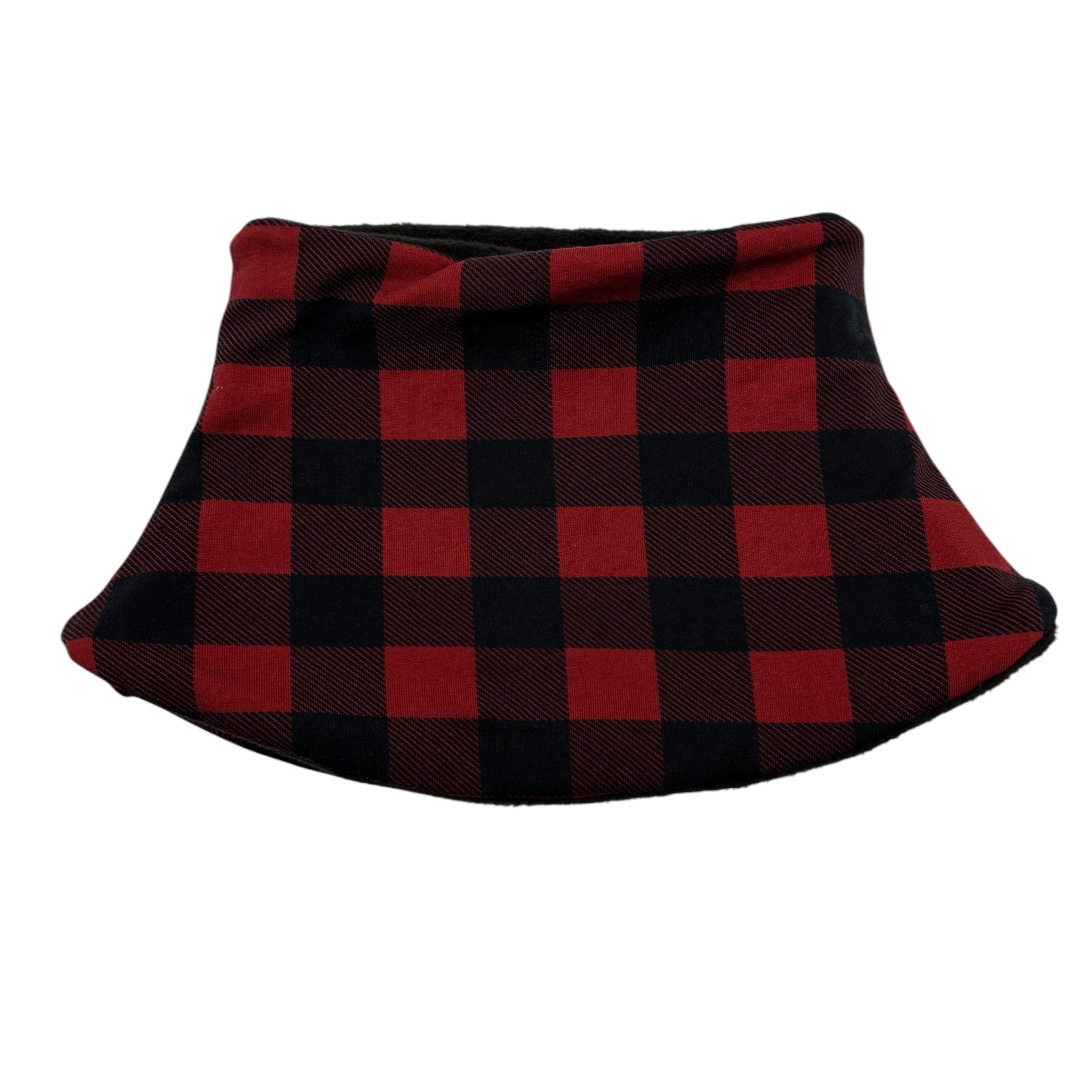 Expertly crafted by hand, this neck warmer is made from soft knit fabric featuring a classic red and black plaid print. The interior is lined with luxurious black fleece, providing superior comfort and warmth. Available in sizes for children aged 1-3, 3-6, and 6-9 years, this neck warmer is both comfortable and easy to use, with no zippers, velcro, or extra bulges. For easy maintenance, simply wash with like colors on a cold cycle and either tumble dry on low or line dry.