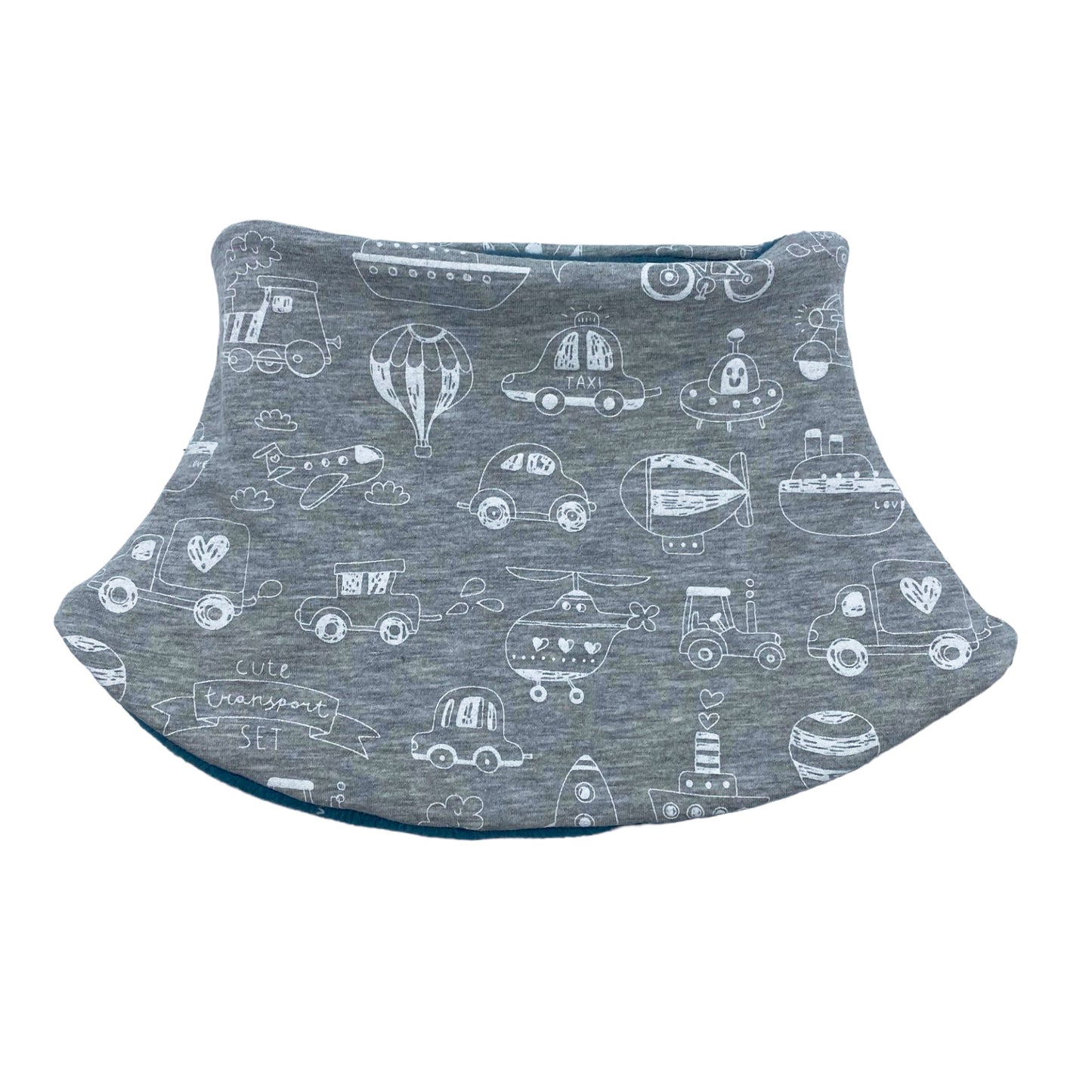 - Soft knit fabric: transportation modes on gray (bikes, UFOs, ships, hot air balloons, airplanes, helicopters, scooters, trucks, tractors and more)