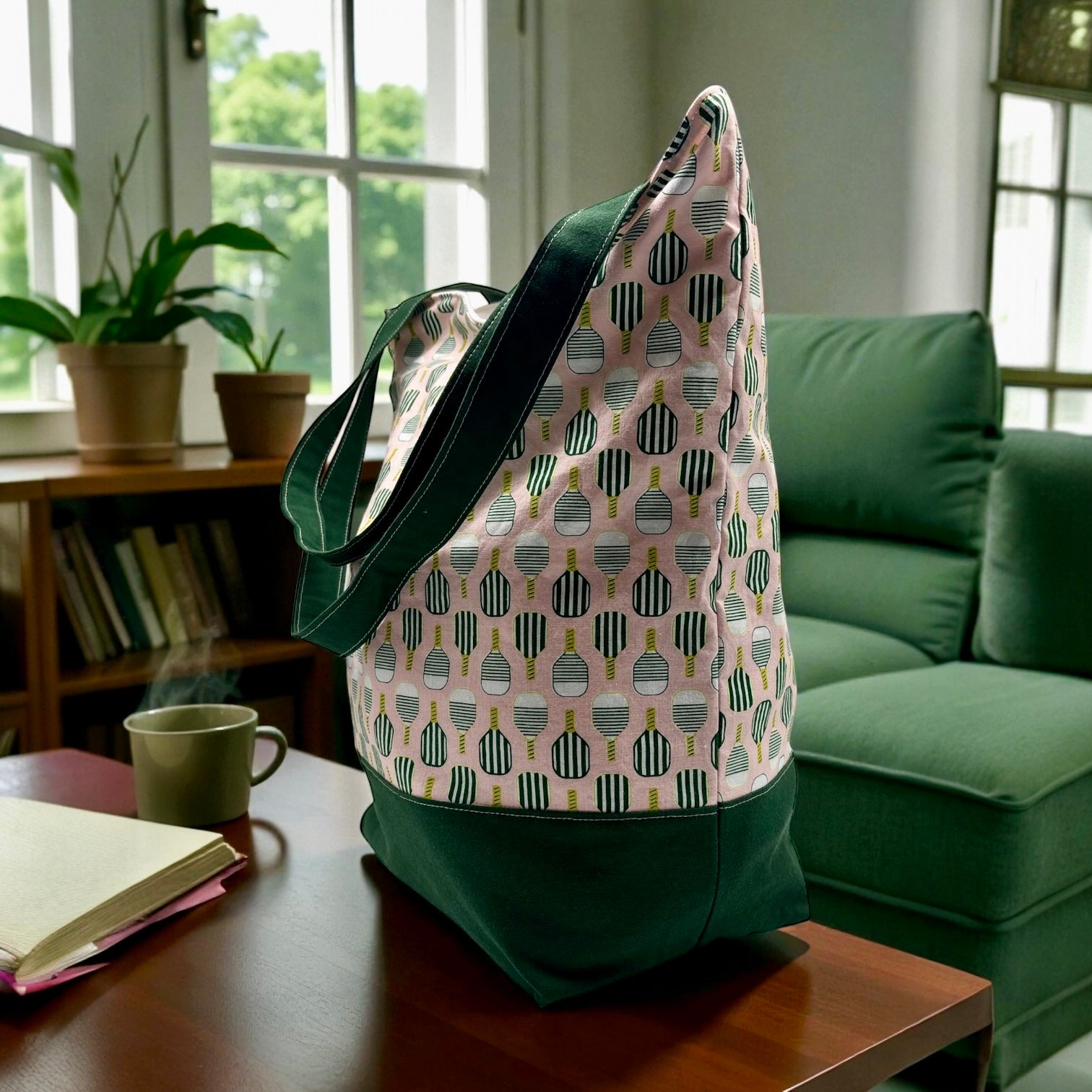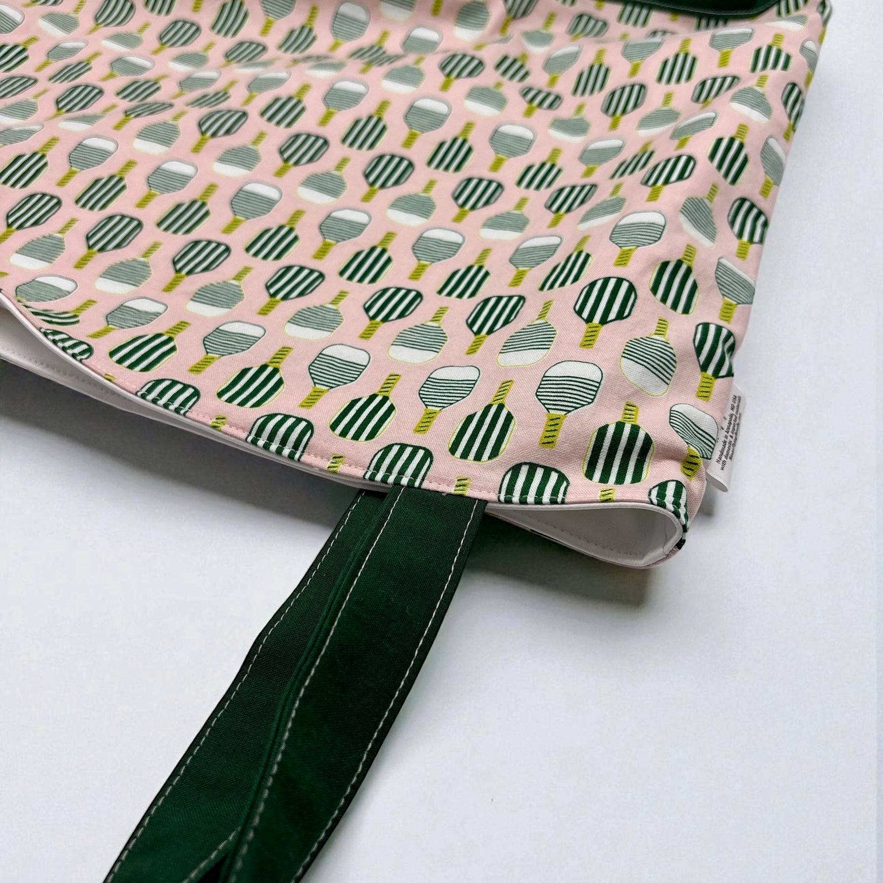 Expertly designed with a pickleball and solid green print combo, this Pool Bag is the perfect addition to your beach or pool day. Measuring 17.5 x 16 x 6.5 inches, they are fully lined with water resistant material and can easily be washed and folded for convenient storage. For cleaning, simply turn the bag inside out and wipe clean, or for tougher stains, wash on cold and line dry. Carry all your family's essentials in style with this versatile and practical bag.