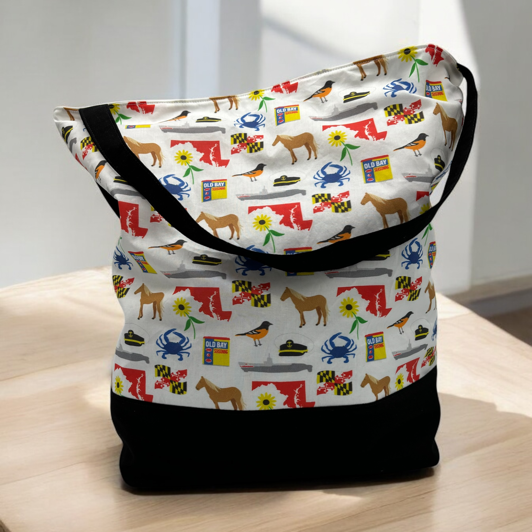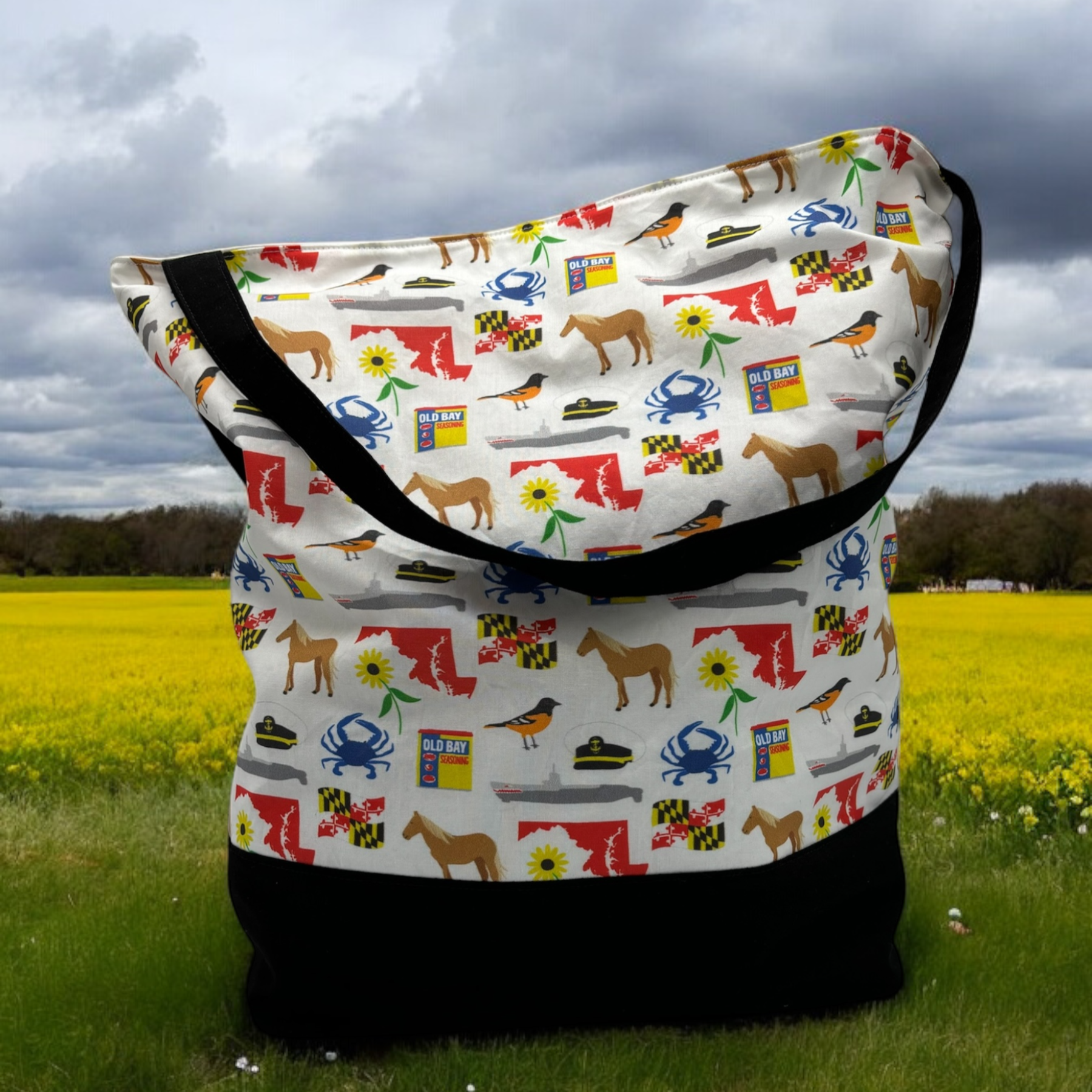 Featuring white anchors on navy combined with a golden yellow accent and handles on top, this Pool Bag is fully lined with water resistant material and measures about 17.5 x 16 x 6.5 inches. It is fully washable and can be easily folded for convenient storage. To clean, simply turn inside out and wipe or machine wash on cold and line dry. This bag is perfect for carrying towels, bathing suits, and all other family essentials to the pool or beach.