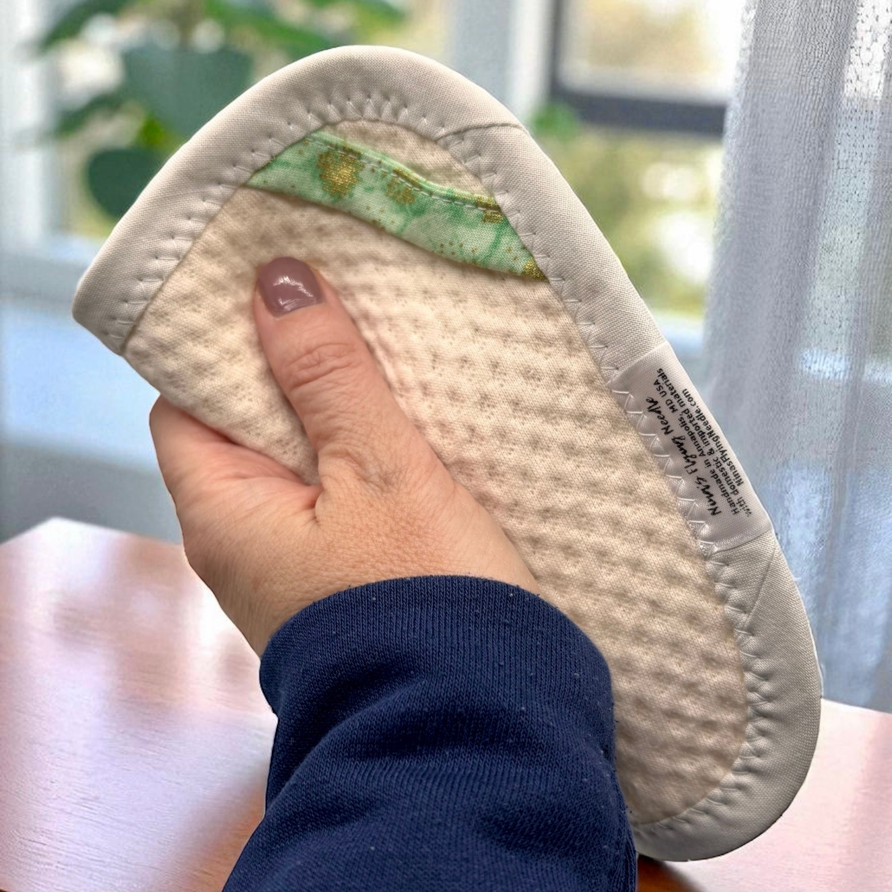 Expertly crafted with 100% organic cotton, these hand-sewn reusable paper towels come in a set of 2 with a TINY size and a solid off white design. The hooks on each towel are a light blue and sparkly gold print. Made with antimicrobial, BPA-free, and hypo-allergenic fabric, these towels are durable, absorbent, and stylish. Measuring 6 x 7.5 inches, they also feature an identical hook for convenient storage or drying. Plus, they are handcrafted with fabric manufactured in the US for added quality and reliability.