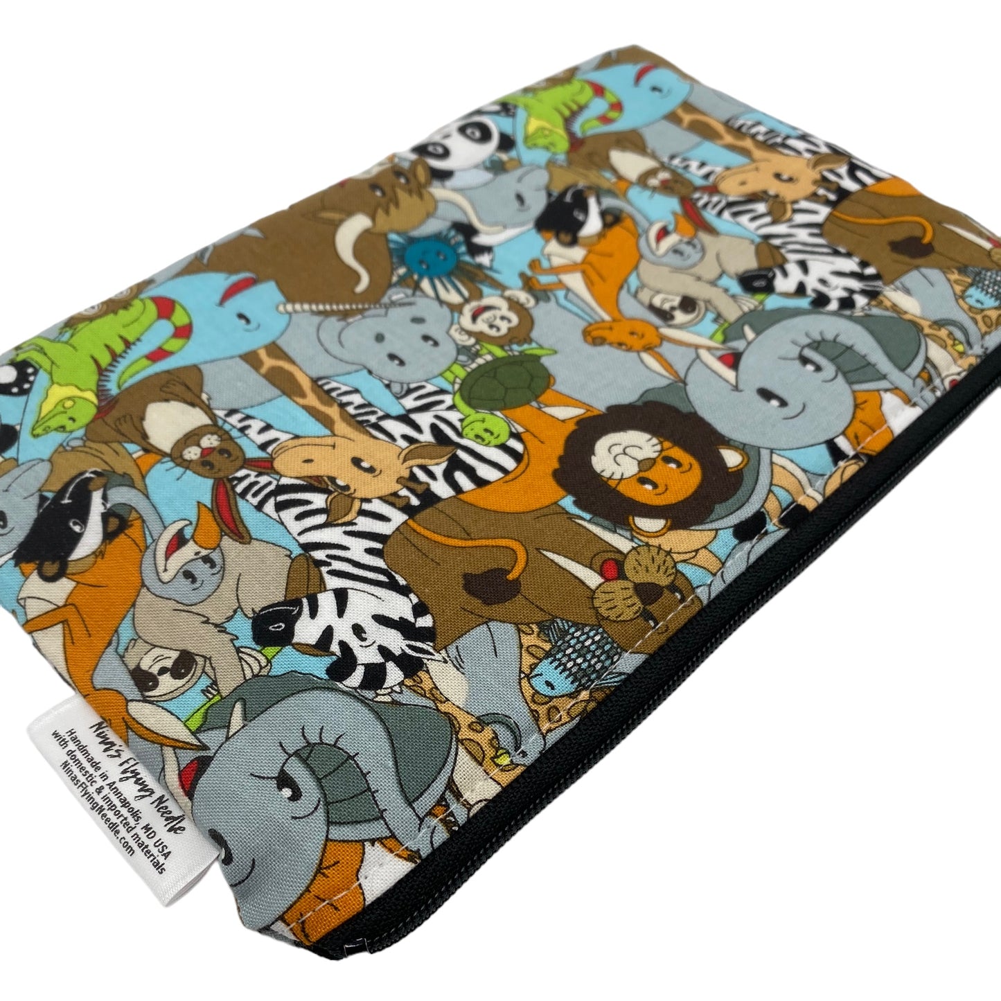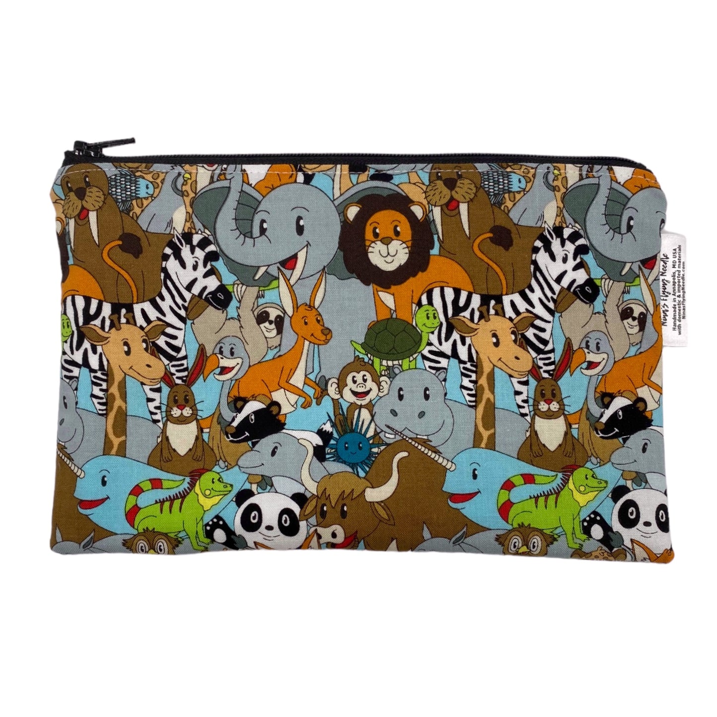 This reusable zippered bag features an astronaut print with a neon yellow zipper and is hand-sewn for durability and quality. Measuring 8 x 6.5 inches, its sandwich size is perfect for holding a bagel or sandwich for lunch. It's also great for storing generous portions of popcorn, chips, or cut up fruits and veggies. Whether you're on the go or traveling, this bag is ideal for storing first aid essentials, toys, or other items. Plus, it's food safe and free of toxins for worry-free use. The easy-to-use zippers are lead-free and high-quality. To clean, simply wipe the inside or toss it in the washing machine and hang it to dry.