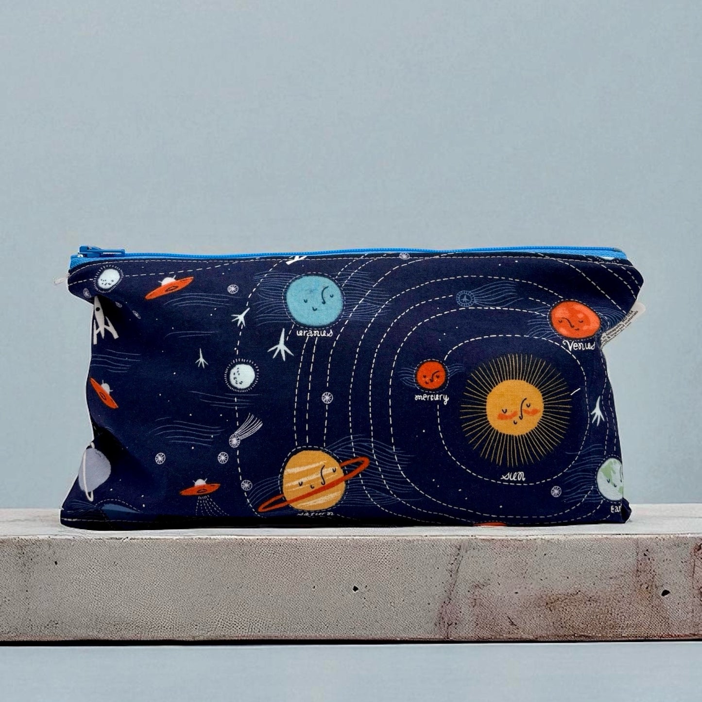 The Travel Sized Wet Bag featuring a solid black with a black zipper is a must-have for all travelers. Whether you need to carry makeup, toiletries, diapers, wipes, swimwear, valuables, or delicate items, this bag has got you covered. It measures 10.5 x 6.5 inches and features a navy blue gold metal zipper. Keep your belongings safe and dry with this bag's durable construction and secure closure. Plus, it's easy to clean - simply turn it inside out and wipe clean, or wash in the machine on cold and line dry.