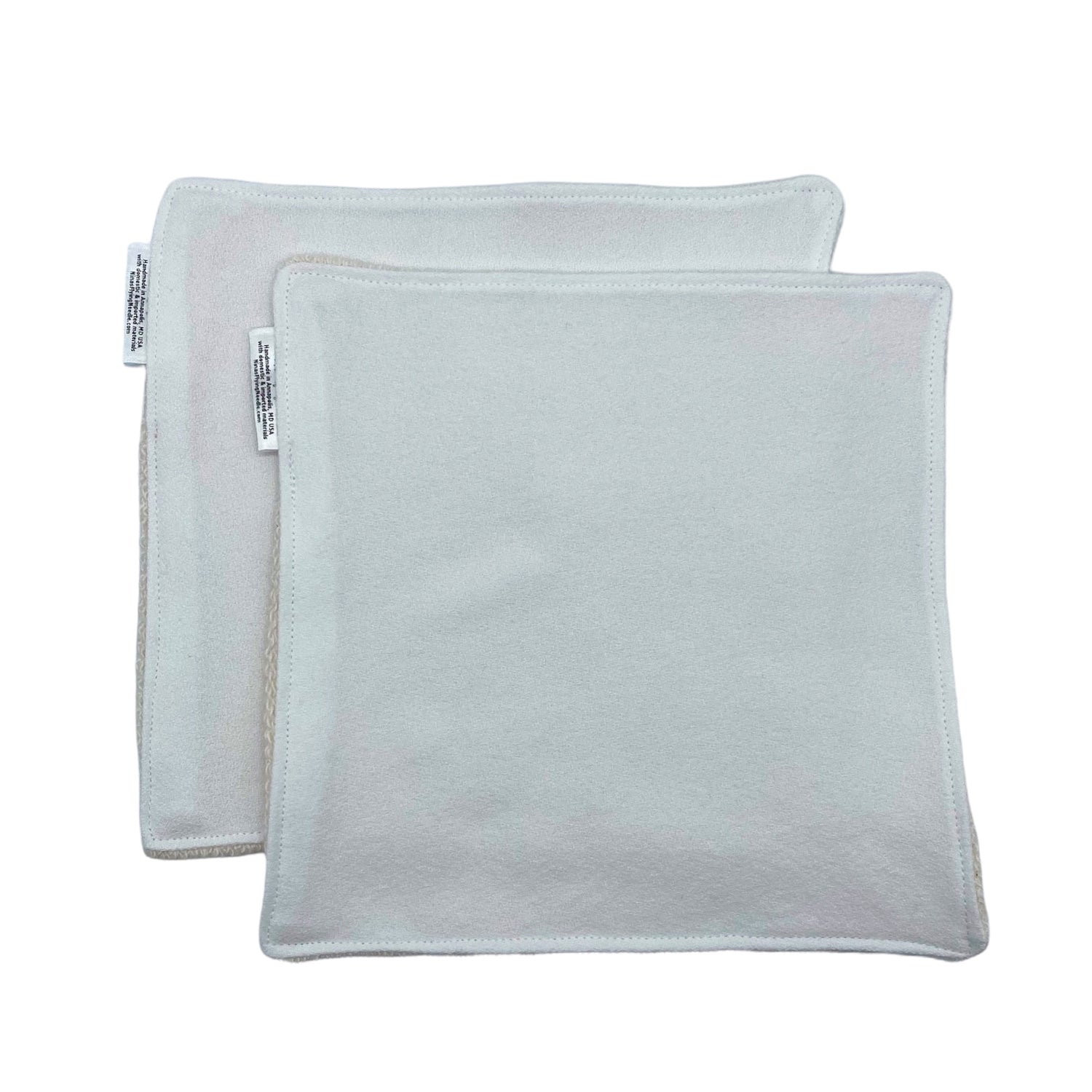 - Set of 2 hand-sewn, reusable wash cloths in size REGULAR