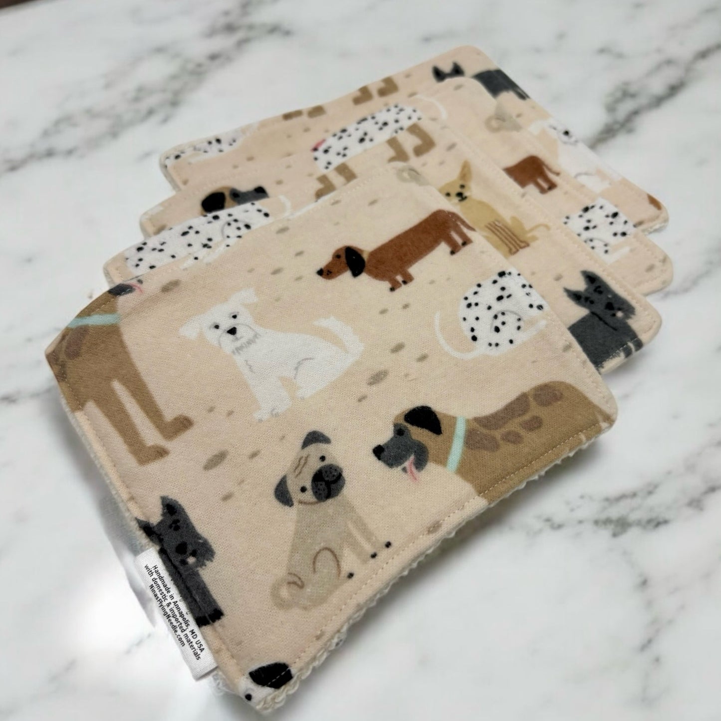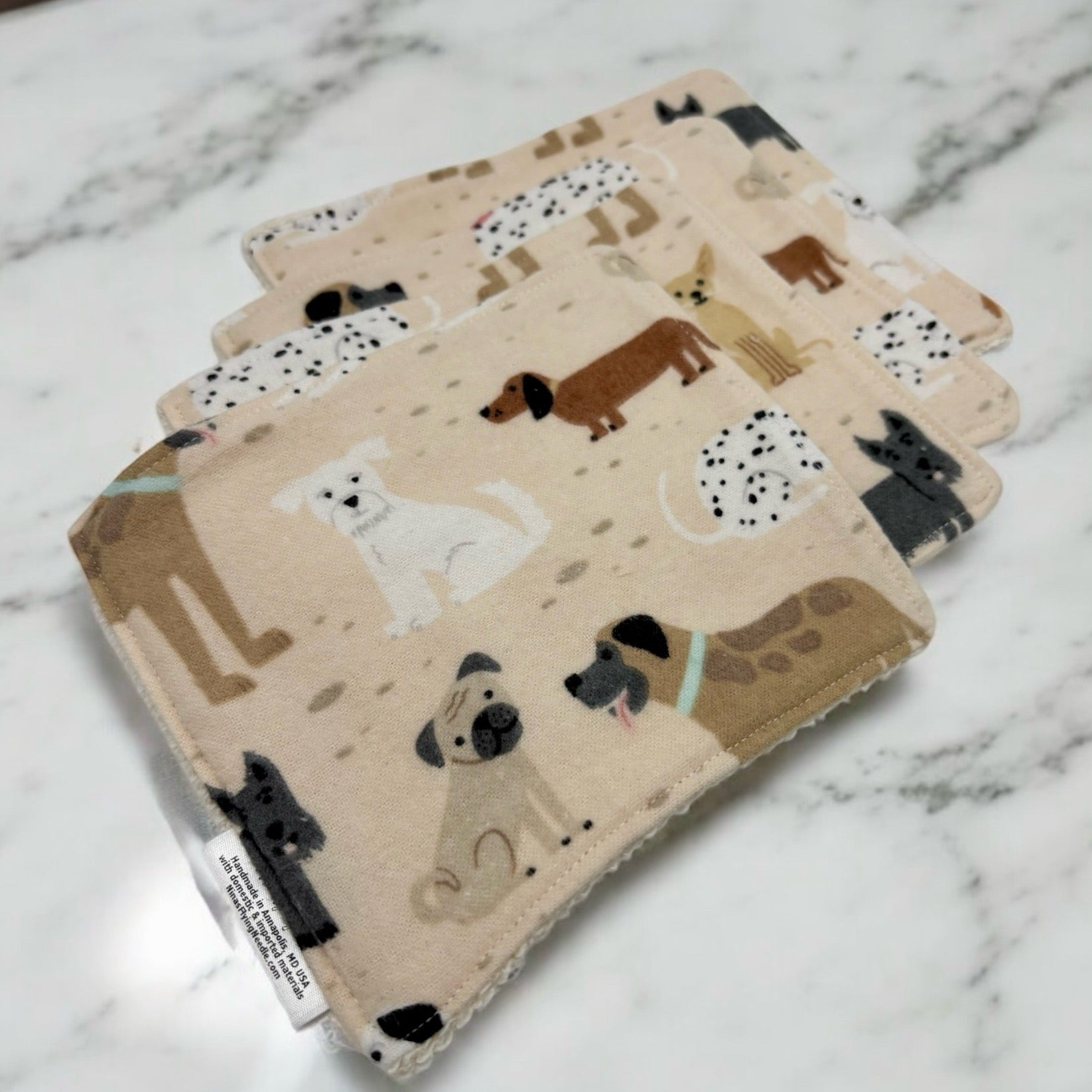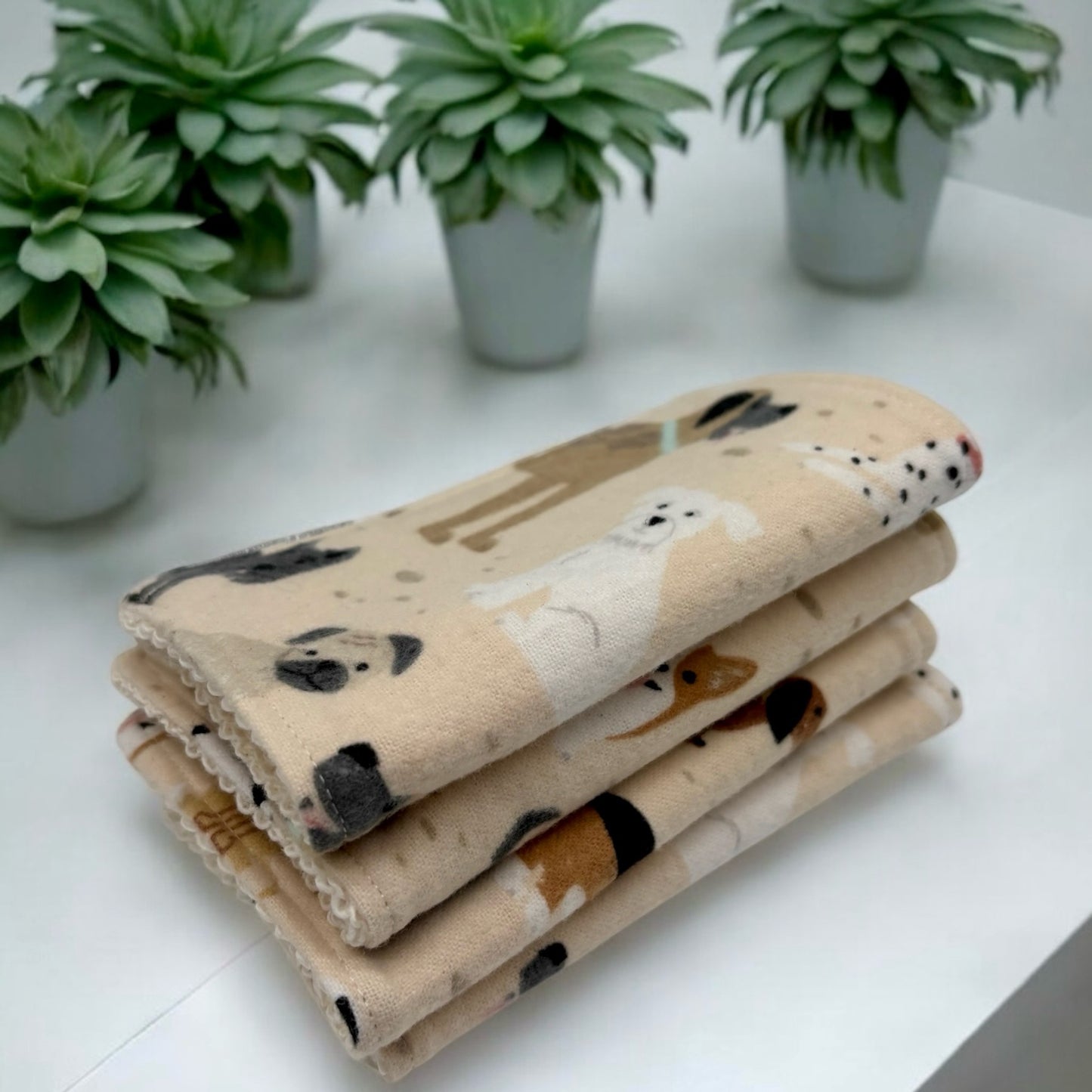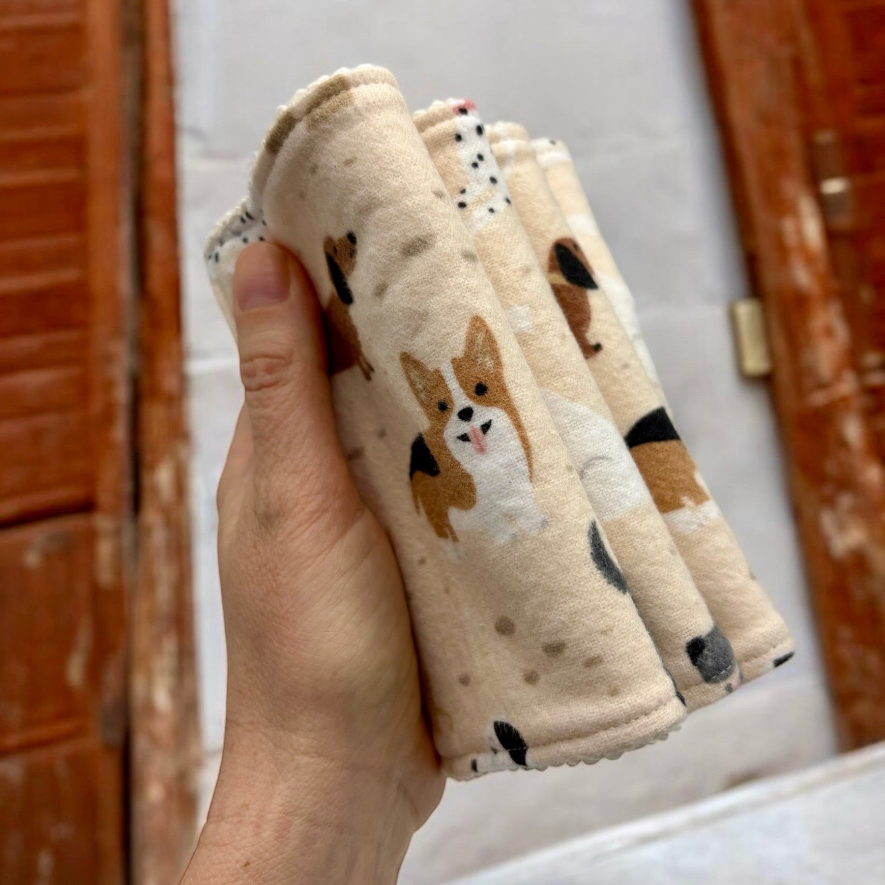 4 hand-sewn, reusable wash cloths in MINI size. Made of 100% organic french terry cotton on one side and 100% flannel with a red and white chevron print on the other. Measures 6 x 4.5 inches and can be used as baby wipes, face wipes, toddler napkins, or family cloth. Say goodbye to disposable wipes, cotton balls, and facial rounds. Use for scrubbing messes, applying skincare, cleansing, or removing makeup. Flannel becomes more absorbent with each wash. Simply wash with like colors on warm and tumble dry low. For a polished look, iron as needed.